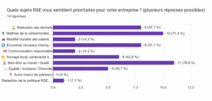 Enfin nous vous avons sollicité pour connaître vos attentes en matière de RSE. En voici les résultats :